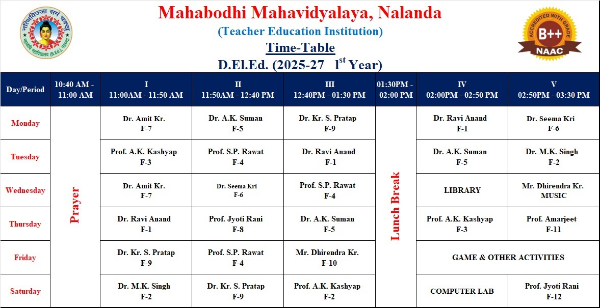 - Academic Time Table, Session: 2025-27